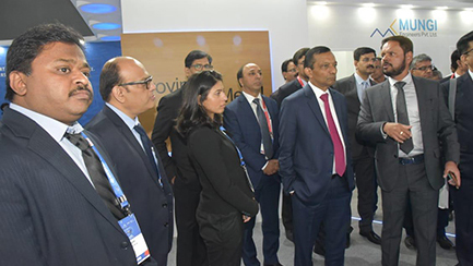 Praful Mungi C.M.D. Mungi Engineers hosting Dr. Goenka and the Mahindra top management team in Mungi stall at the Auto Expo 2020 Component show.